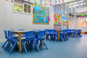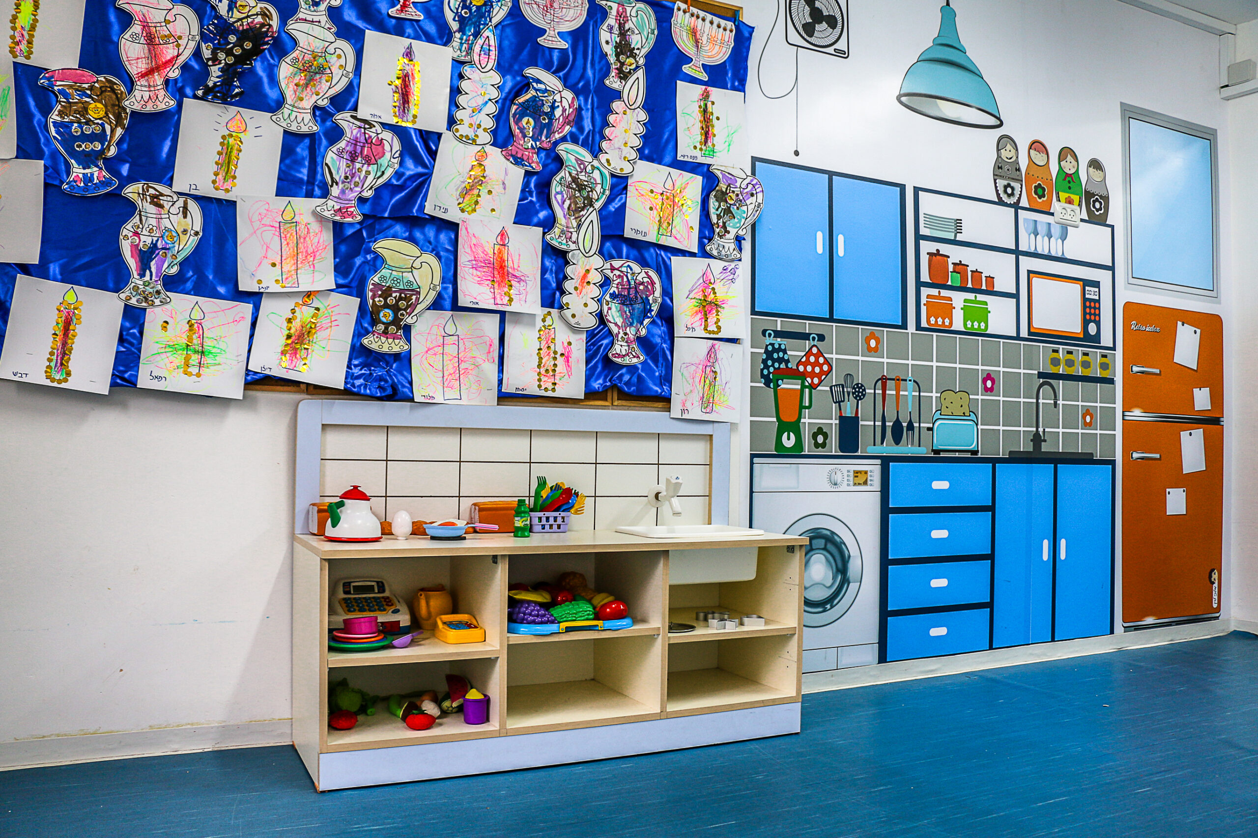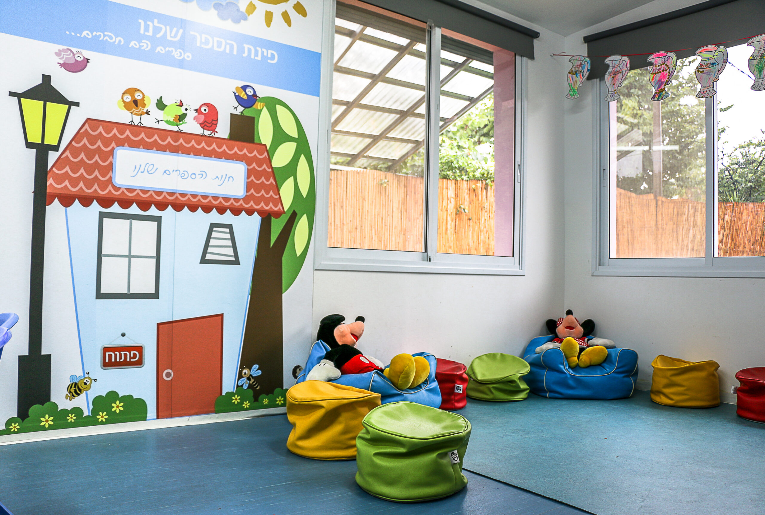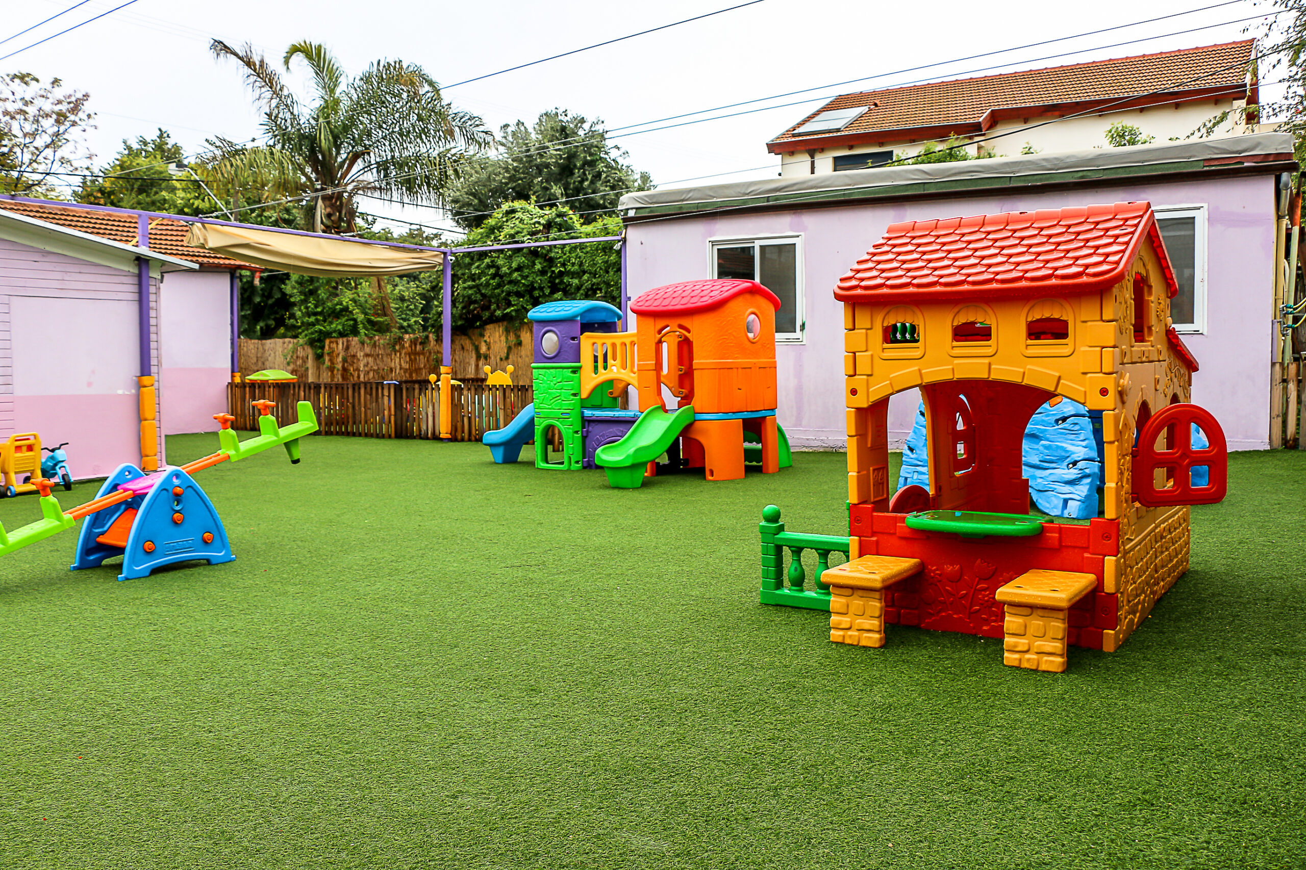בגן ארבע כיתות מרווחות ומעוצבות. בכל כיתה שפע של צעצועים ומשחקים בטיחותיים ומגוונים. לכל קבוצת גיל חצר נפרדת גדולה, מוצלת ומלאה במתקני חצר עם תווי תקן.